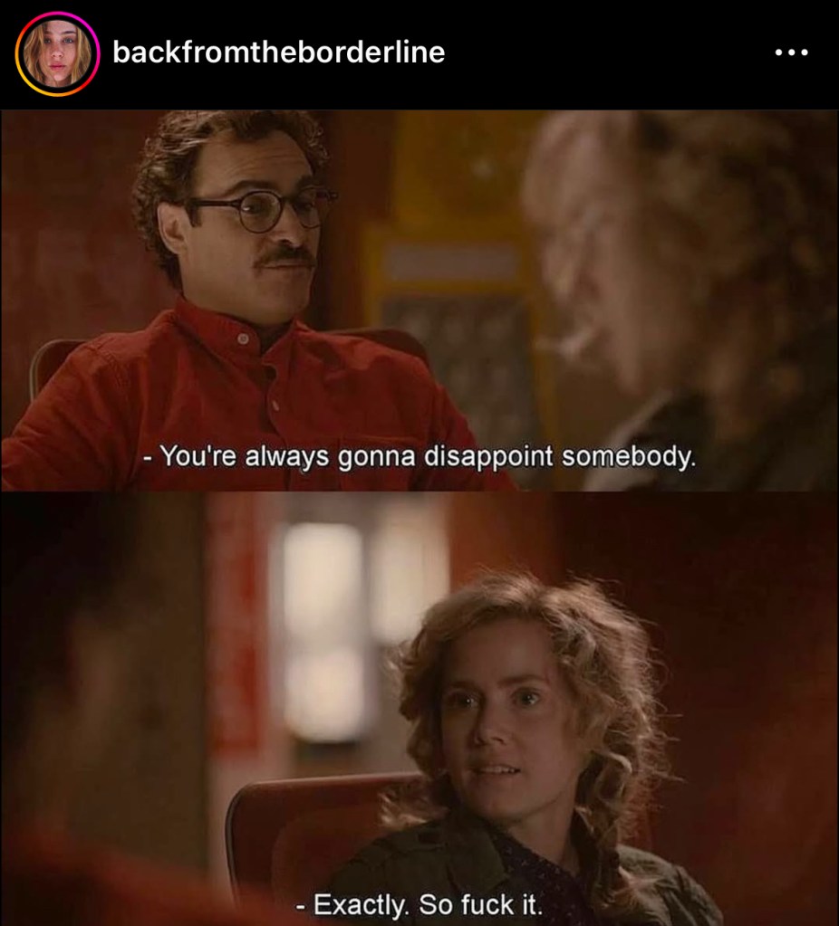 Da je bilo lako doneti odluku o tome — nije, ali sam shvatila da jeste neophodno ako želim da saznam ko sam stvarno i šta mi je potrebno. Videćemo šta će da izraste iz tog procesa.